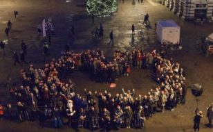 Vanaf de Janskliniek vertrok de stoet met medewerkers, vrijwilligers en cliënten, voorafgegaan door een Kerstmannendixieland band, richting Grote Markt. Kerstmuziek, kerstmutsen met lichtjes en knipperende hartjes zorgden voor een vrolijke kerstsfeer. Vanaf het hoogste balkon van het Haarlemse stadhuis werd het hart fotografisch vastgelegd.