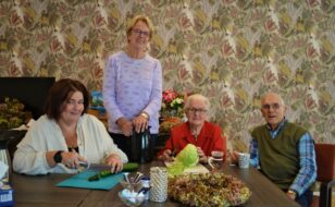 Op de foto: Monique van Leeuwen van Kennemerhart Oppeppers, vrijwilliger Jeanne Brand en bezoekers Tonny en Cees Hetem.