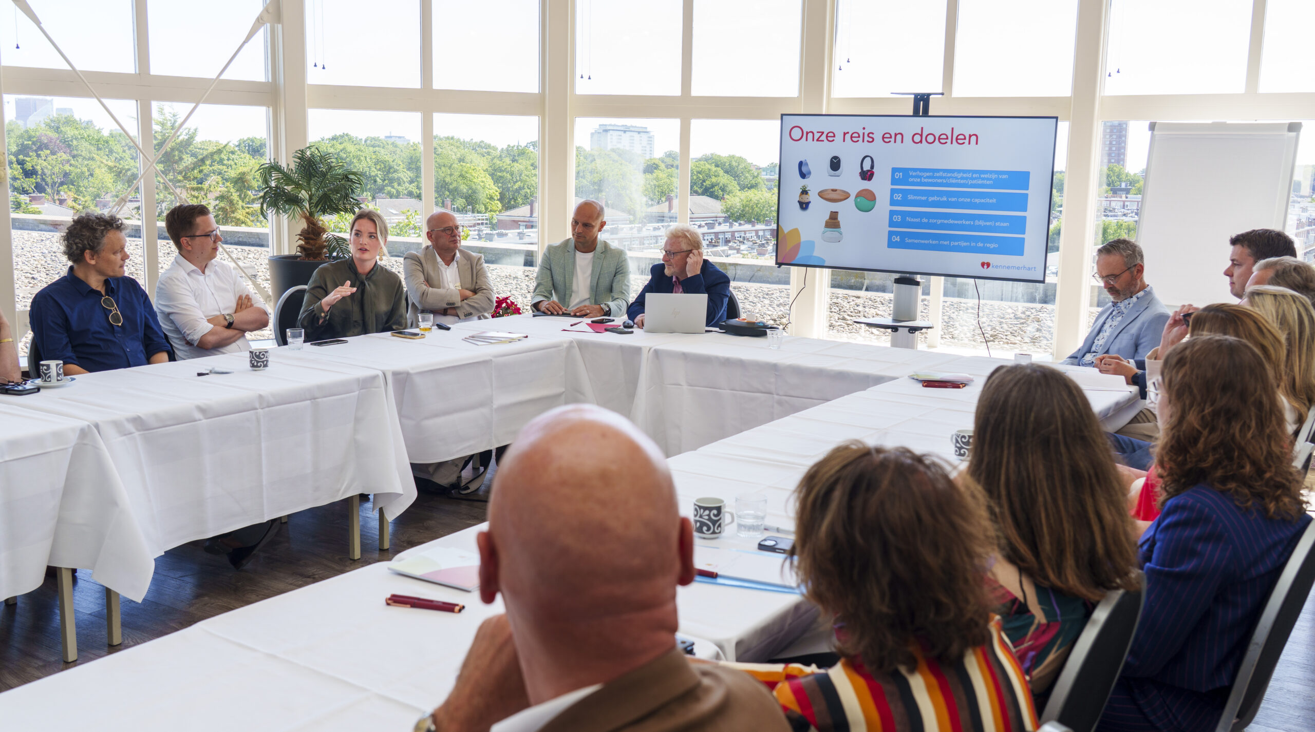 Tijdens deze bijeenkomst, in aanwezigheid van demissionair staatssecretaris Pouw-Verweij en diverse betrokken organisaties, werd stilgestaan bij de gezamenlijke ambitie om de ouderenzorg toegankelijk en toekomstbestendig te houden. Kennemerhart werd uitgenodigd om een praktijkvoorbeeld te delen van hoe zorgtechnologie daarin nu al een rol speelt.
