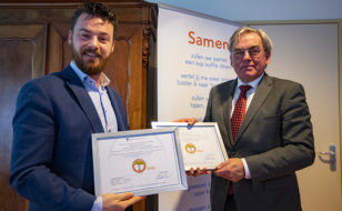 Op donderdag 16 januari 2020 mocht Klaas Stoter, voorzitter Raad van Bestuur van Kennemerhart, het bronzen keurmerk Milieuthermometer Zorg in ontvangst nemen van de heer Robbert Berkhout, wethouder Duurzaamheid, Economie & Mobiliteit van de gemeente Haarlem.